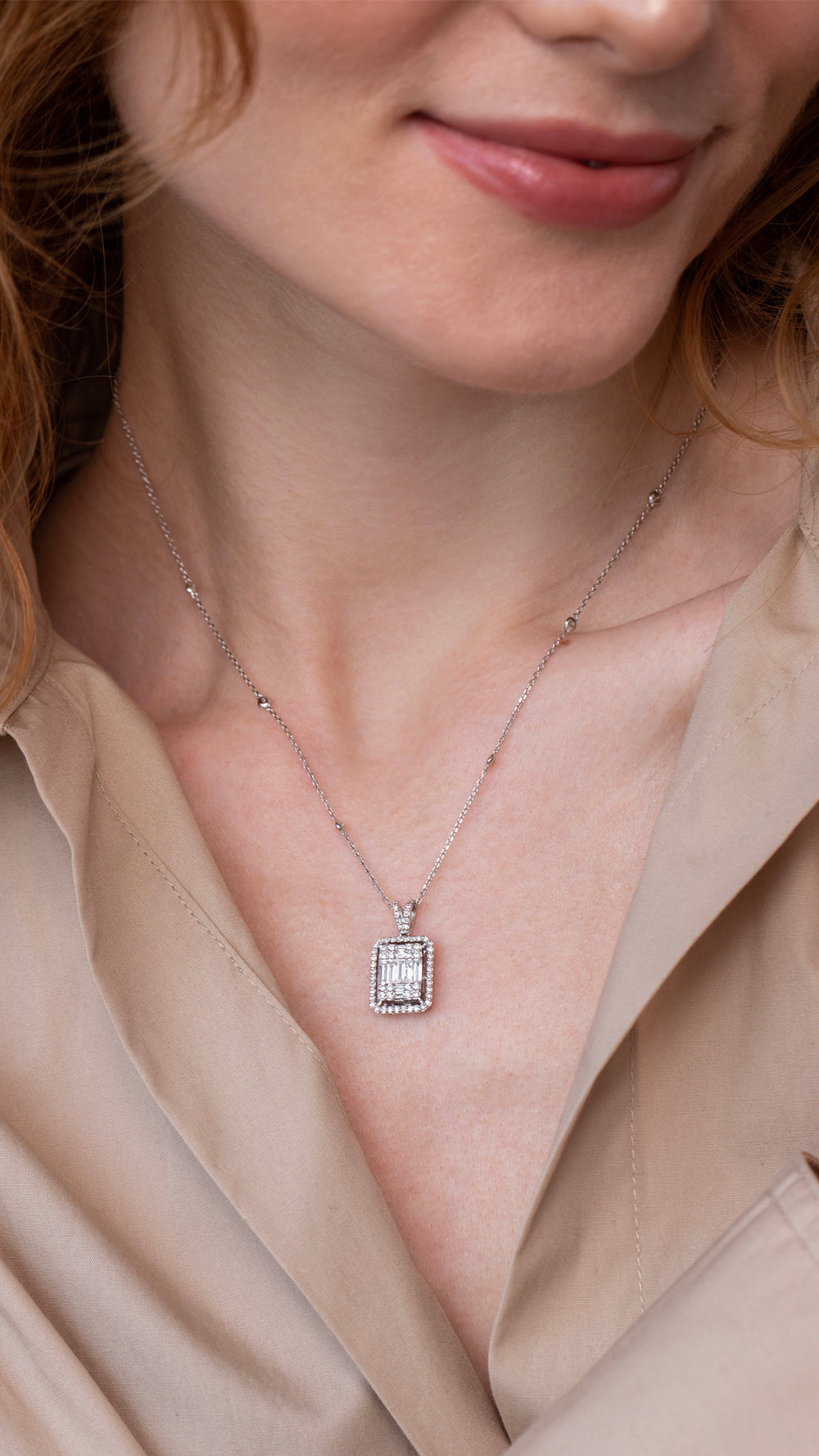 Zarif Baget Çerçeveli Pırlanta Kolye