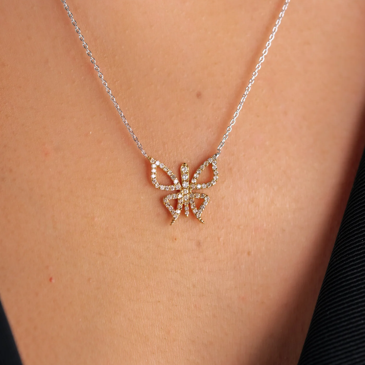 Zarif Pırlanta Kelebek Kolye
