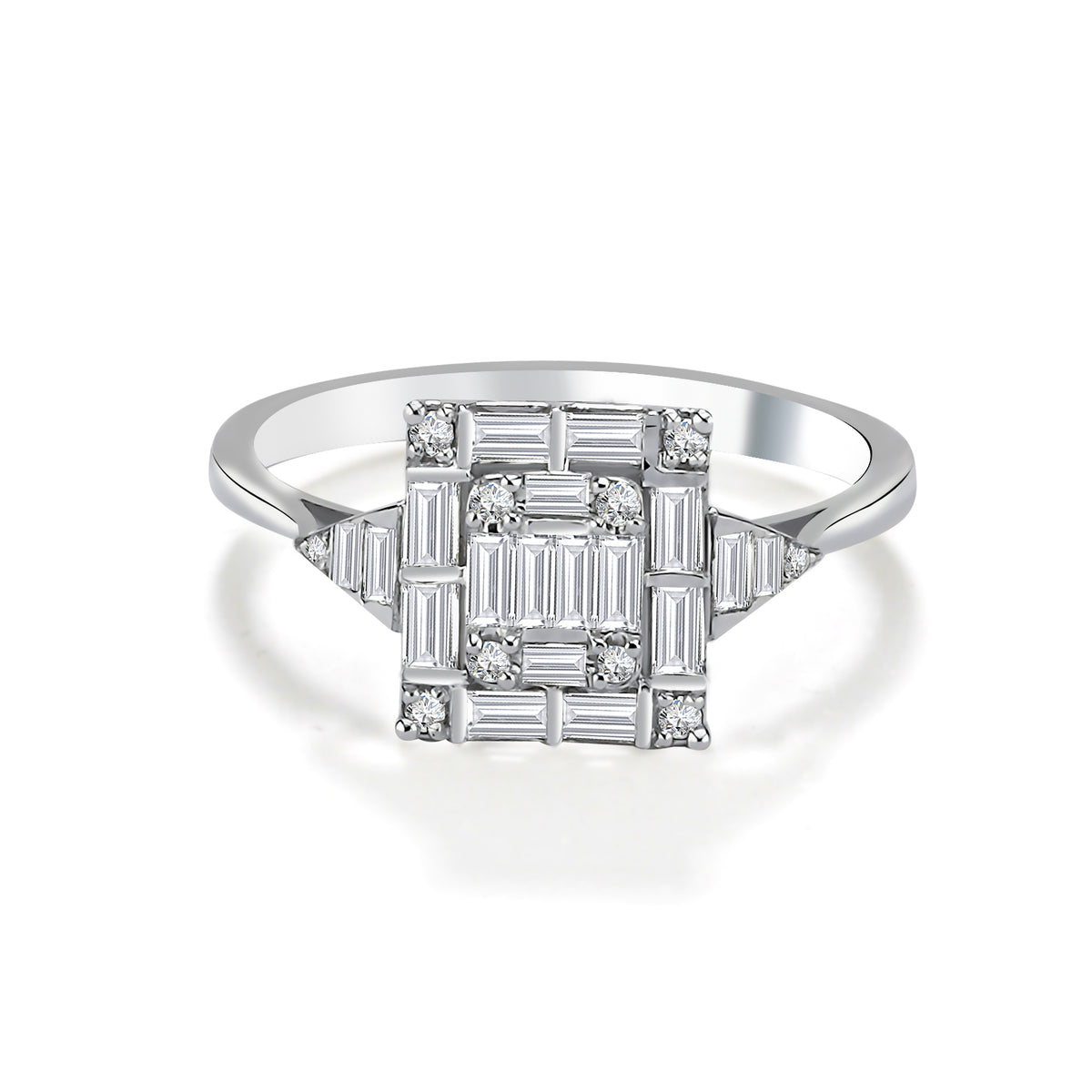 Zarif Simetri Baget Pırlantalı Beyaz Altın Yüzük