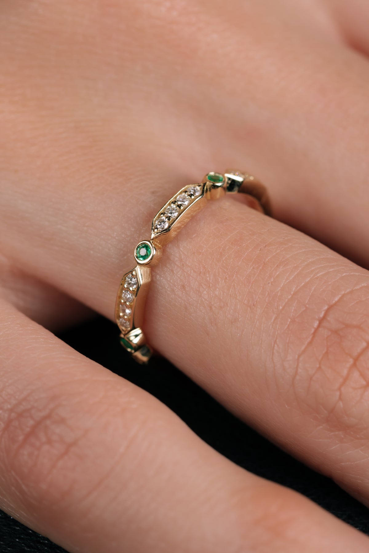 Zarif Zümrüt Pırlanta Yüzük