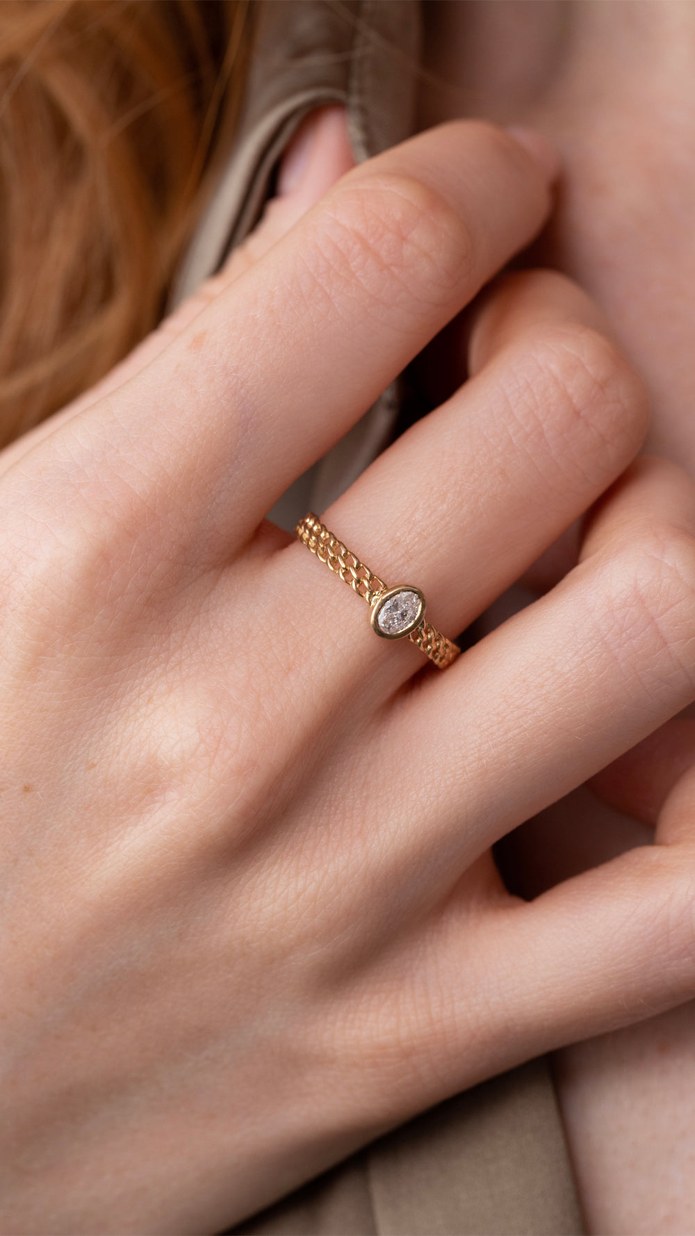 Zincir Desenli Altın Oval Kesim Pırlanta Yüzük