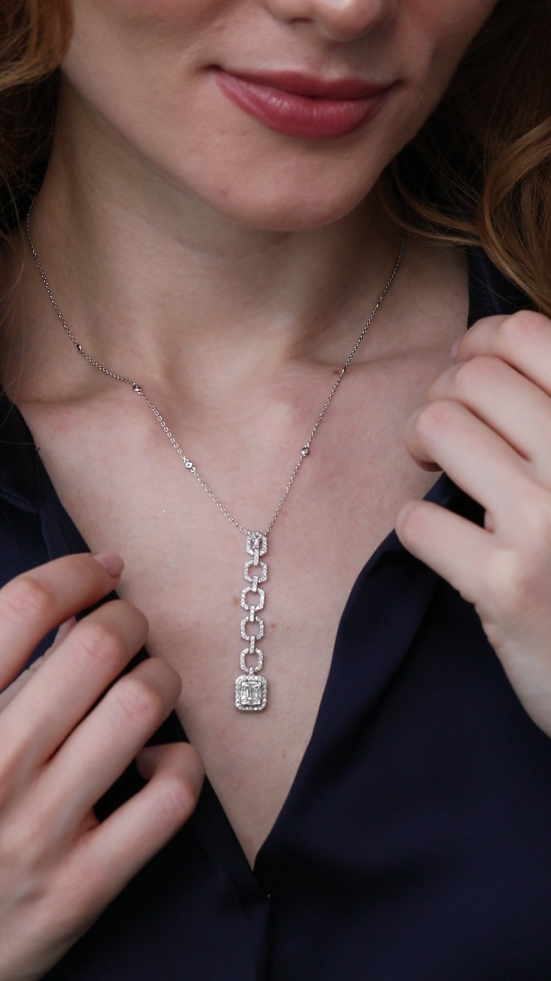 La Rosa’nın zarif koleksiyonlarından biri olan "Zincir Işıltısı" kolyesi, farklı kesimlerdeki pırlantaların bir araya gelmesiyle oluşturulmuştur. 14 ayar beyaz altın üzerine işlenen pırlantalar, zincir detayıyla birleştirilerek kolyeye modern ve zamansız bir dokunuş katmıştır. Marquise, yuvarlak ve baget kesim pırlantalar, hem sofistike bir görünüm hem de büyüleyici bir ışıltı sağlar.