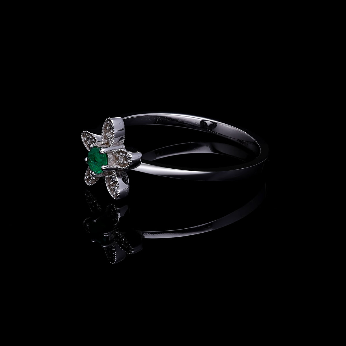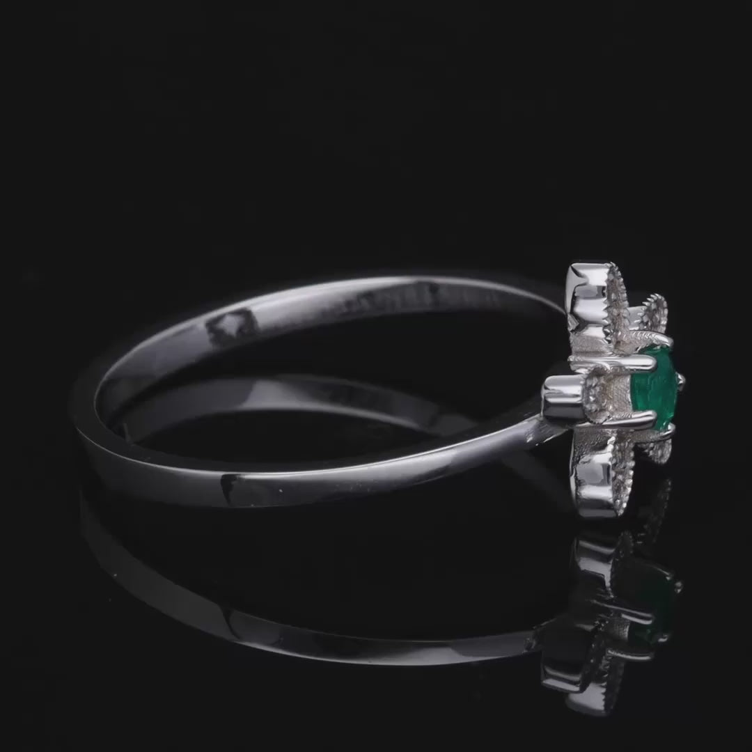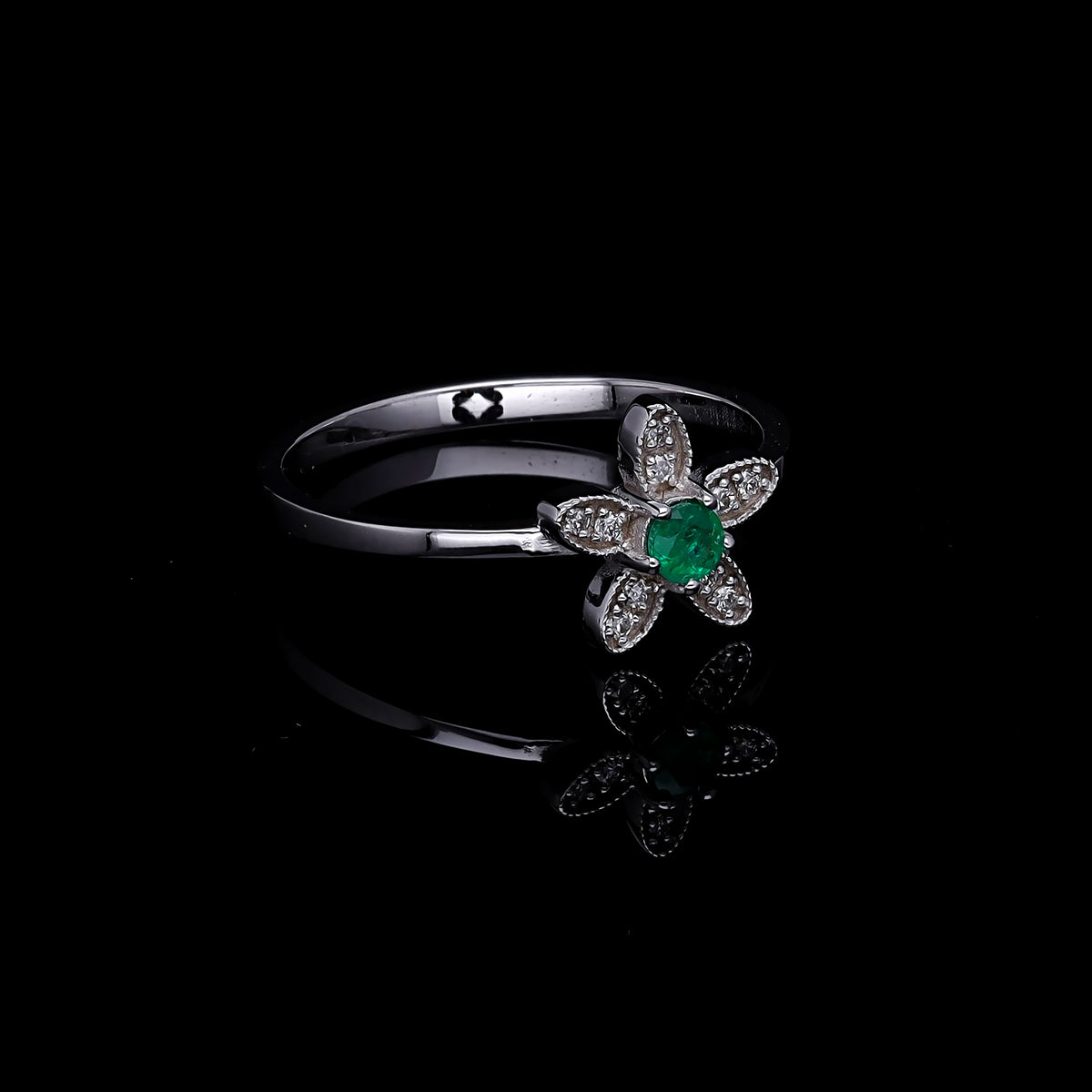 Zümrüdün büyüleyici yeşil tonu ve pırlantanın eşsiz ışıltısıyla tasarlanmış olan Zümrüt Çiçek Pırlanta Yüzük, zarafetin ve doğallığın muhteşem bir birleşimidir. Çiçek motifinin merkezinde yer alan zümrüt taşı, doğanın tazeliğini ve canlılığını sembolize ederken, pırlantalarla süslenen yaprak detayları bu yüzüğe sofistike bir dokunuş katıyor. Minimal ve modern çizgisi ile her anınıza uyum sağlayacak bu tasarım, stilinizin en zarif tamamlayıcısı olacak.