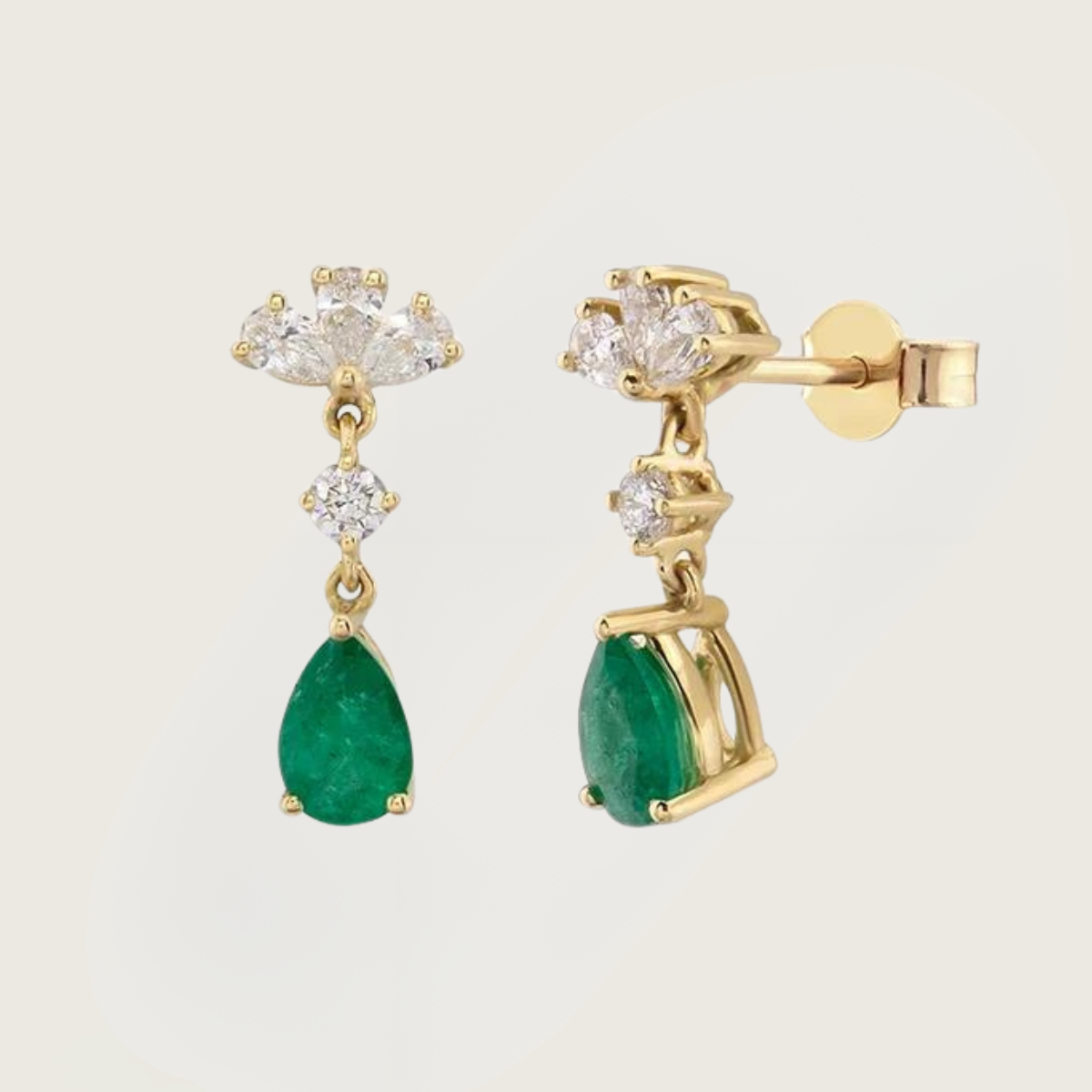 Zümrüt Damlası Altın Işıltı Küpeler