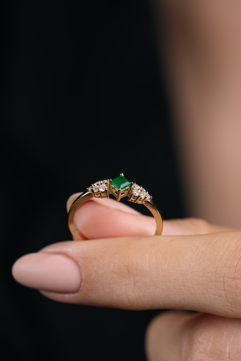 Zümrüt Göz Alıcı Pırlanta Yüzük
