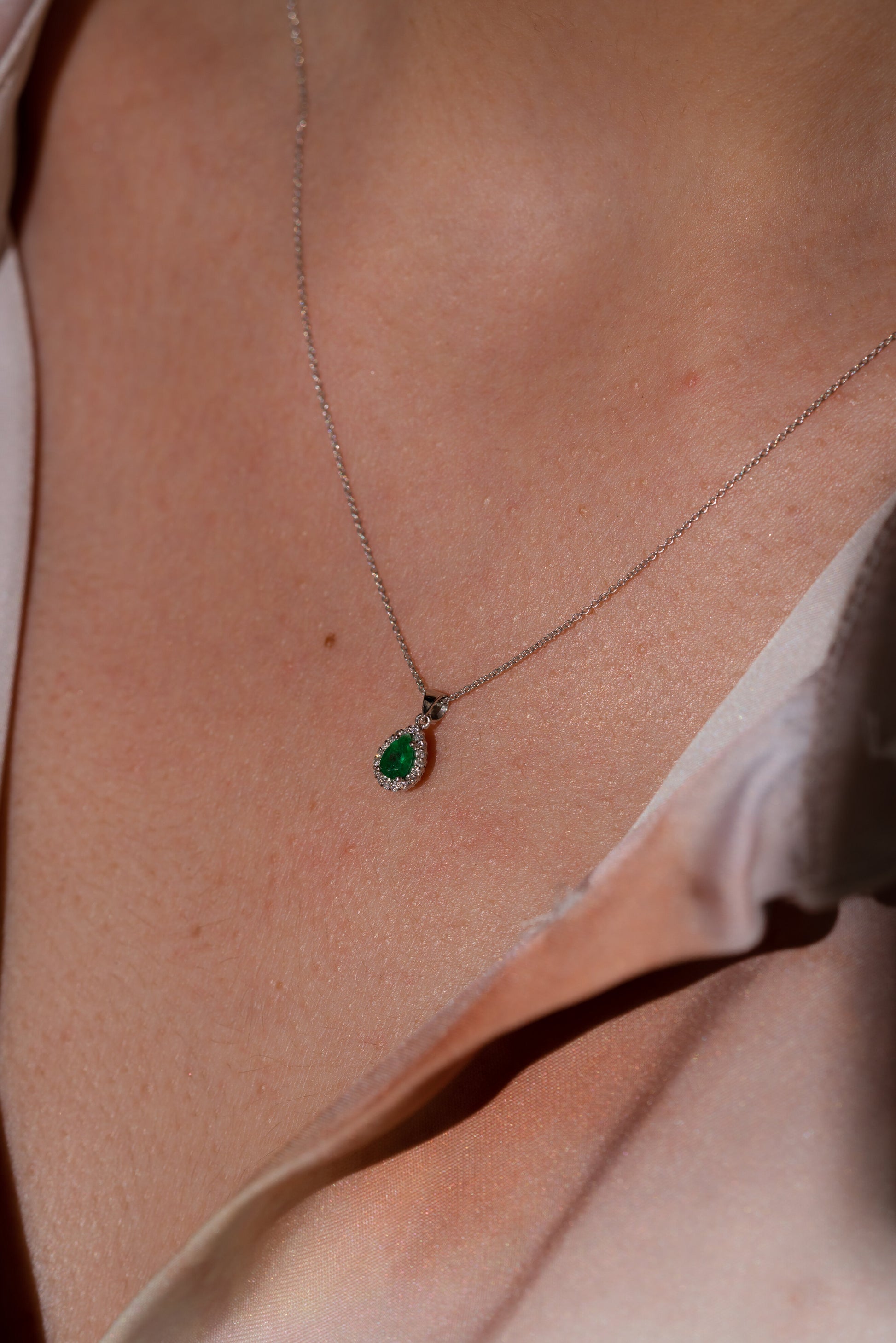 Zümrüt Gözyaşı Parıltısı Beyaz Altın Pırlanta Kolye