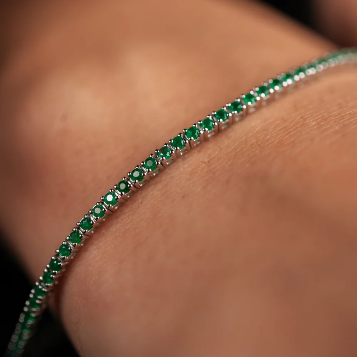 Zümrüt Işığı Beyaz Altın Pırlanta Bileklik