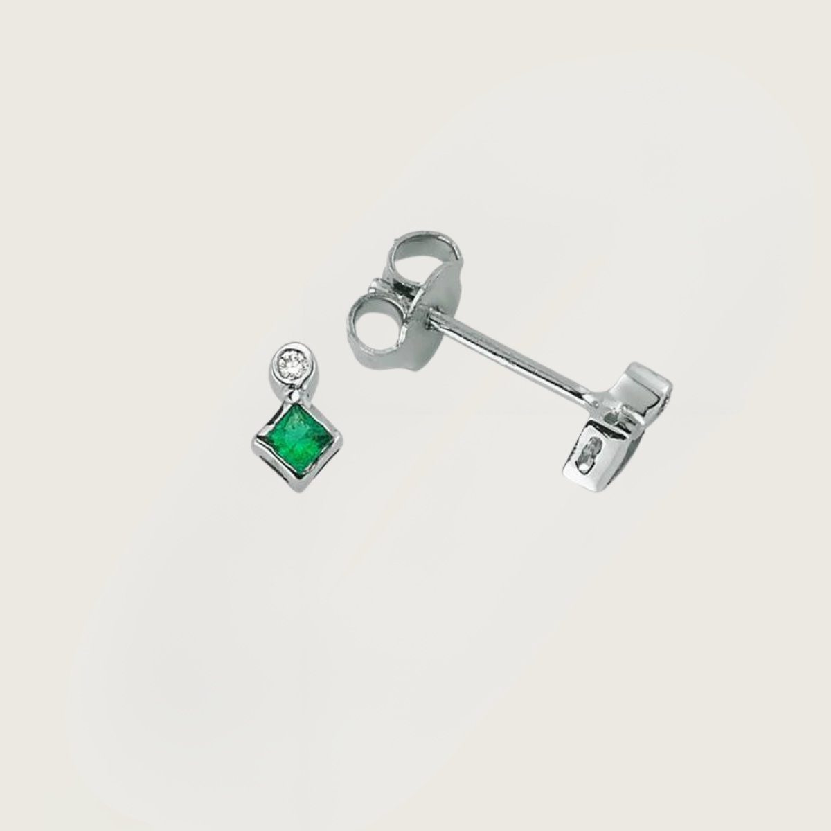 Zümrüt Işığı Beyaz Altın Pırlantalı Küpe, doğanın zarafetini yansıtan şık ve minimalist bir tasarıma sahiptir. 14 ayar beyaz altından üretilmiş bu saplama küpeler, kare kesim (prenses kesim) zümrüt taşı ve pırlantalarla süslenmiştir. Günlük kullanım için ideal olan bu hafif ve zarif tasarım, her kombine sofistike bir dokunuş katarken konforlu bir kullanım sağlar.