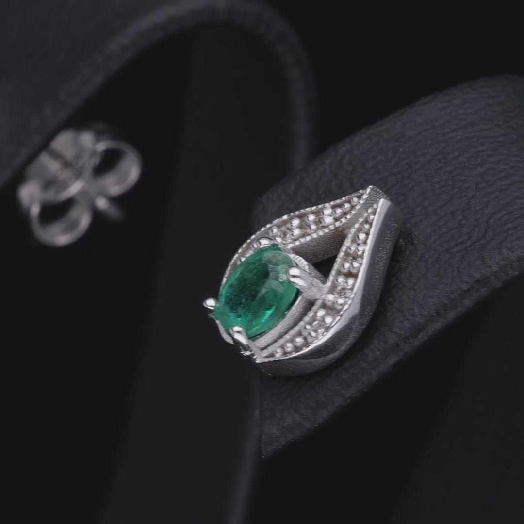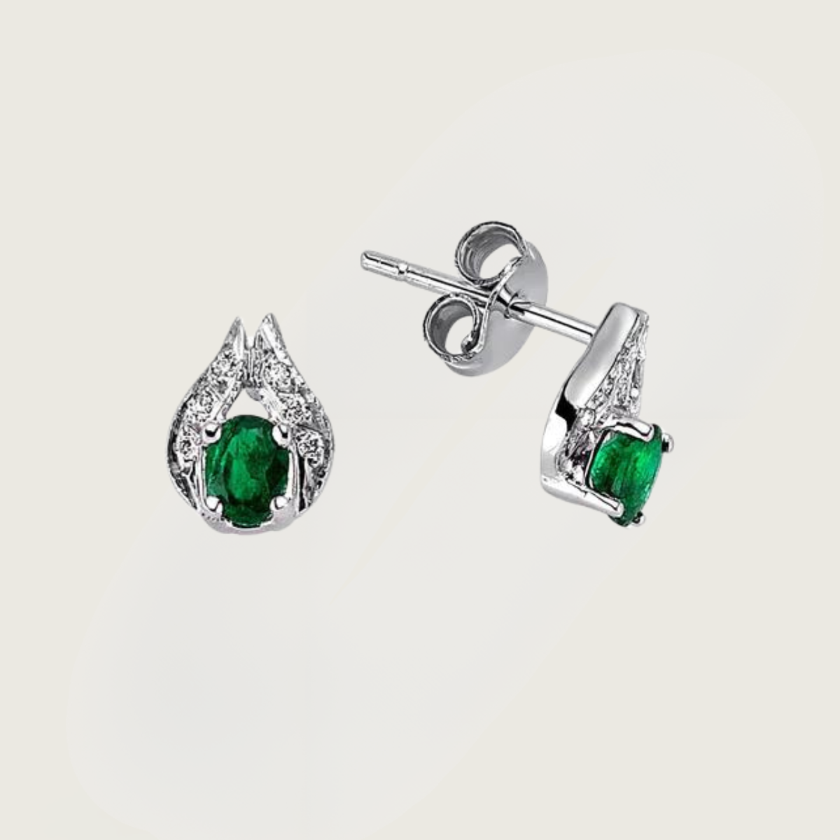 Zümrüt Parıltısı Beyaz Altın Küpe