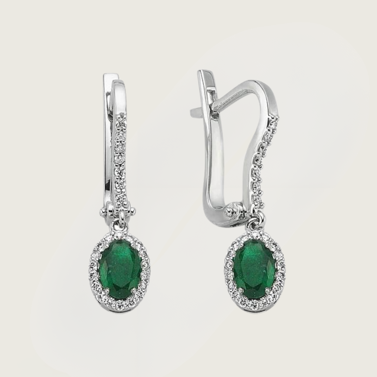 Zümrüt Parıltısı Beyaz Altın Pırlanta Küpe